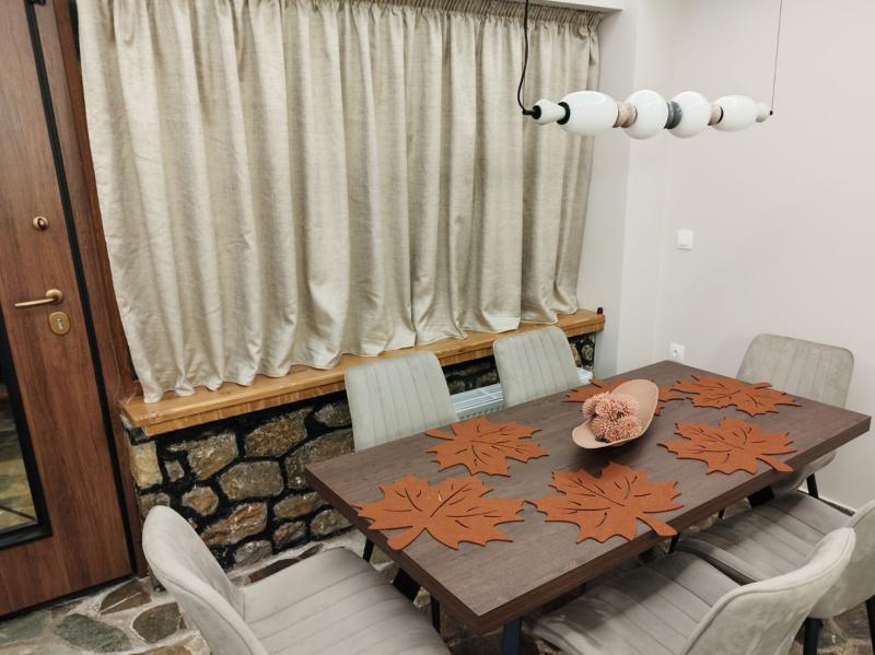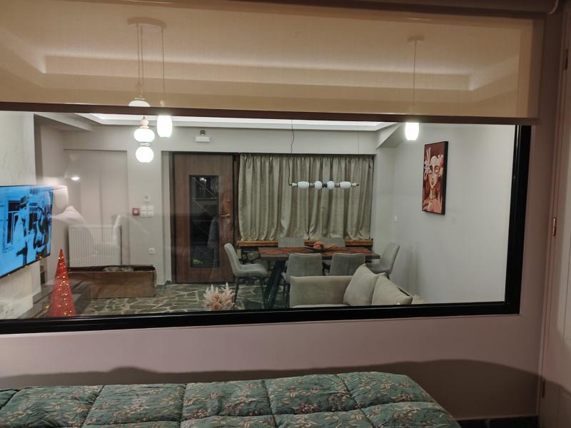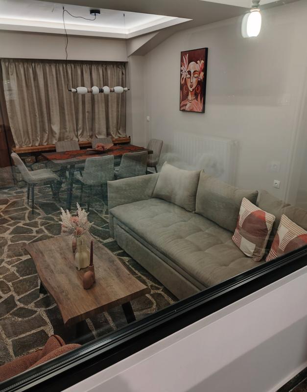 Περιλαμβάνει διπλά κρεβάτια 1,60 × 2,00 μ. και καναπέ-κρεβάτι 2,30 × 0,90 μ., ενώ η κουζίνα είναι πλήρως εξοπλισμένη με όλα τα απαραίτητα σκεύη, πλυντήριο και στεγνωτήριο. Στον χώρο θα βρείτε ένα ενεργειακό τζάκι, που δημιουργεί μια ατμόσφαιρα ζεστασιάς και χαλάρωσης τις βραδινές ώρες.